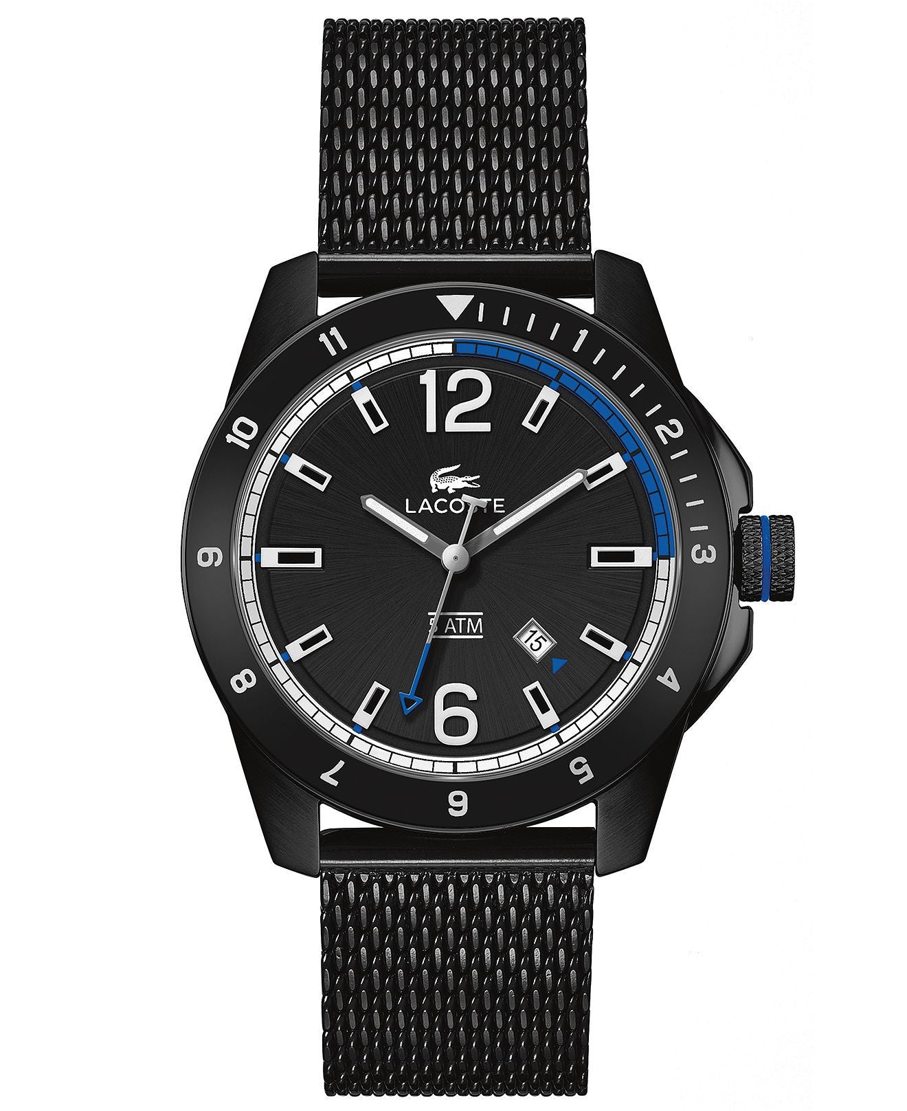 Sporting heritage infuses this Lacoste watch featuring a fine-linked rubber strap and a streamlined dial. A graphic, urban accessory ideal for everyday wear.